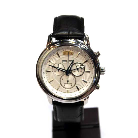 This is a wristwatch with an elegant and timeless design. It comes with three sub-dials for added utility. The high-quality leather bands offer enhanced comfort.