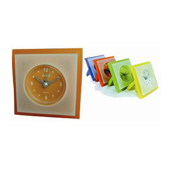 This series of square-shaped quartz clocks comes in various bright colors. Each clock features a simplistic round dial with quarter markers. This practical, eye-catching clock is a delightful addition to your home.