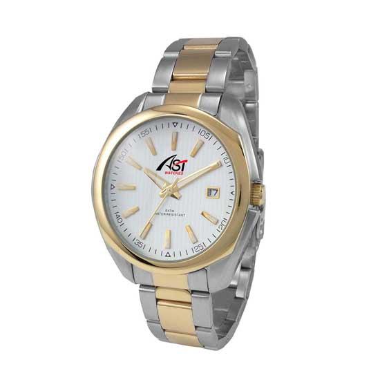 This is a stylish quartz watch that is designed with a stainless steel case and band in silvery and golden. The white dial of this watch comes with three hands, a date window and precise markers. This simple yet elegant watch is an ideal addition to complete your timepiece box.