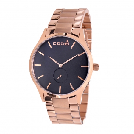 The polished rose gold bracelet and case of this quartz watch lends the overall design a confident personality, finishing on a minimalist note with a clean black dial. Its classic baton indices and hands are further powered by skillful Japanese Miyota movement to indicate time.