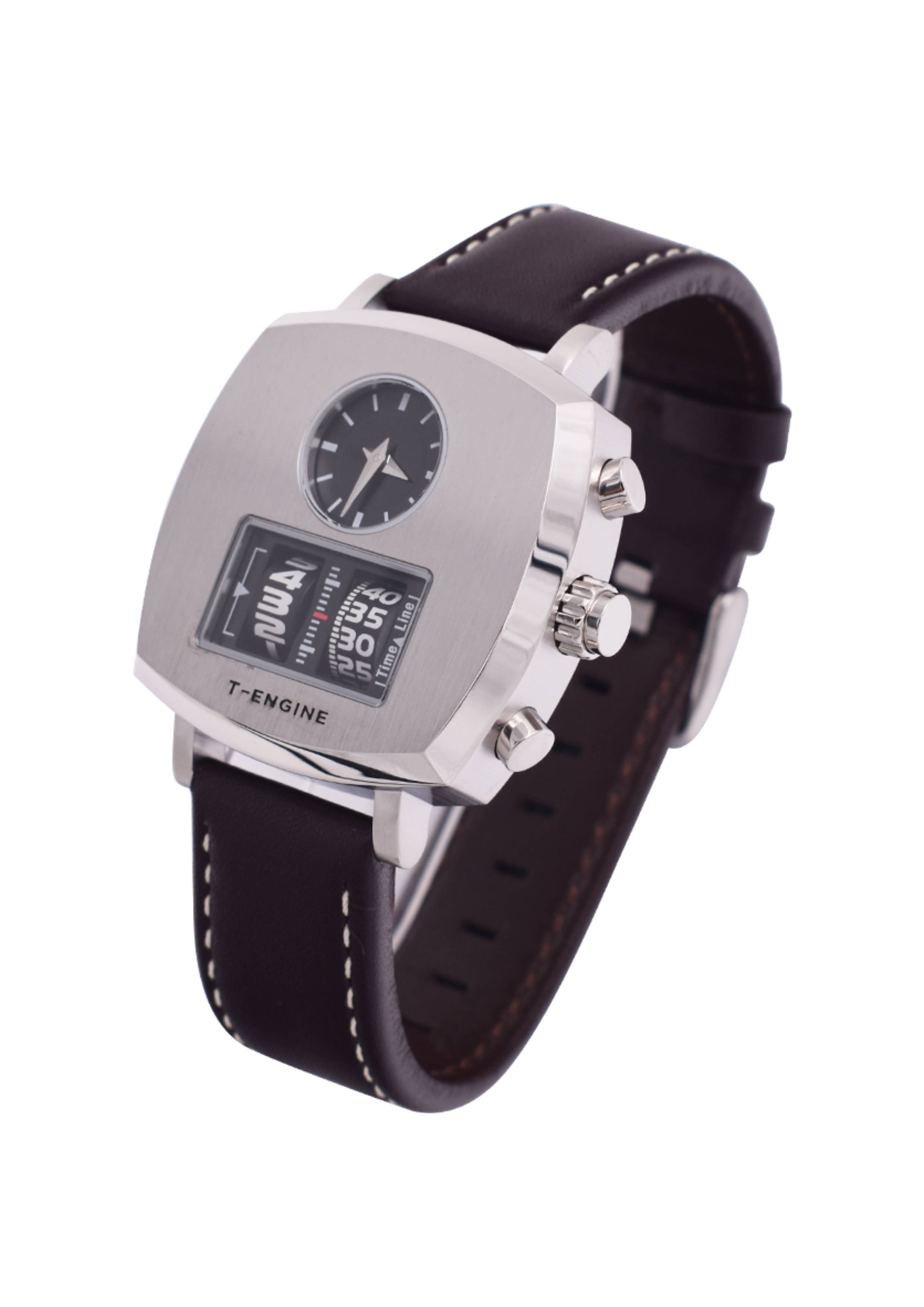 Analogue hour Minute hands. Hour, minute roller. Dual time