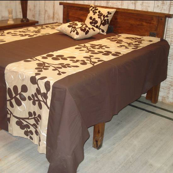 This is a quilt in brown colour. It is embroidered with botanical pattern. It is light and comfortable. It also comes with cushion covers and make the whole set very neat and consistent.