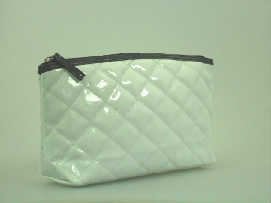 Diamond quiting patent PU cosmetic bag.
