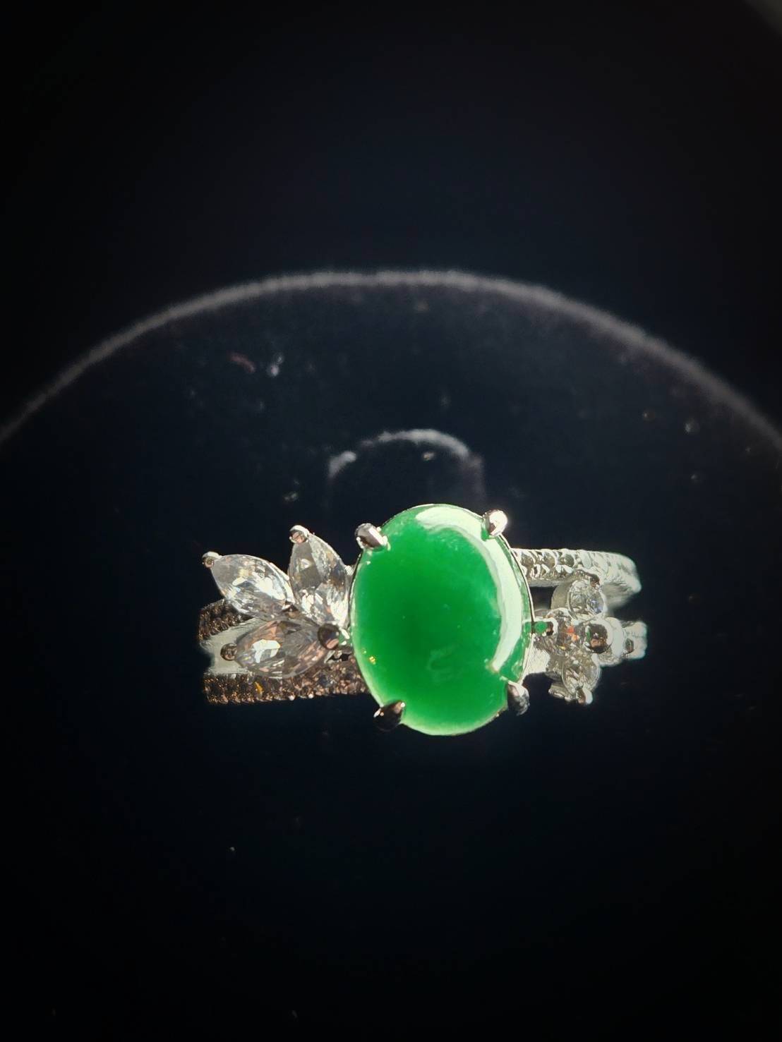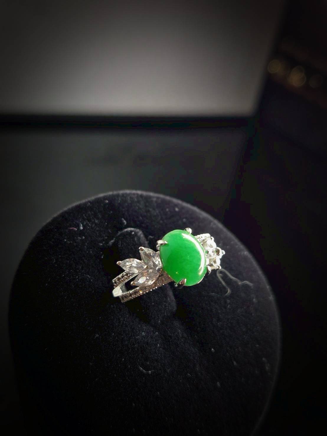 This collection of rings epitomizes the pinnacle of jewelry aesthetics, featuring center stones of premium Imperial Green jadeite with a rich, vibrant green hue and exceptionally even color distribution. The classic cabochon cut highlights a watery and delicate texture, radiating a deep and spiritual glow as light dances across the surface, manifesting an incomparable air of nobility.