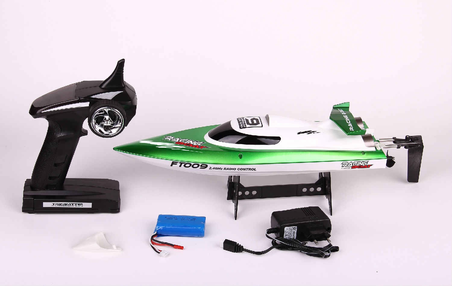 This remote controlled boat comes in a sporty design and is great for racing use. It flaunts a high speed and has a pistol grip remote for control. The race boat comes with a stand and is great for display.