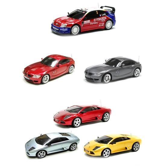 These are scale cars that are remote-controlled. These cars are made of light metals and plastics so they can run quickly. They are made according to the appearance of real racing cars.