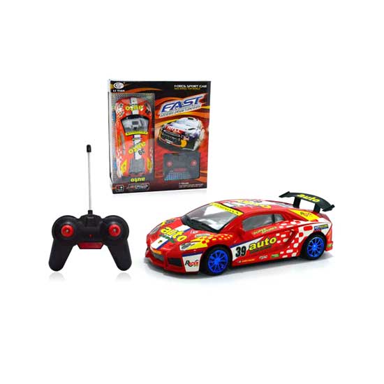 This is an RC car that comes in a window box. In an eye-catching red color, this RC car moves smoothly and steadily. The controller is comfortable to hold and easy to use.
