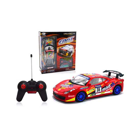 This is an RC car that comes in a window box. Designed with a streamlined body, this toy car moves steadily and smoothly. The sensitive controller makes this RC car easy and fun to play with.