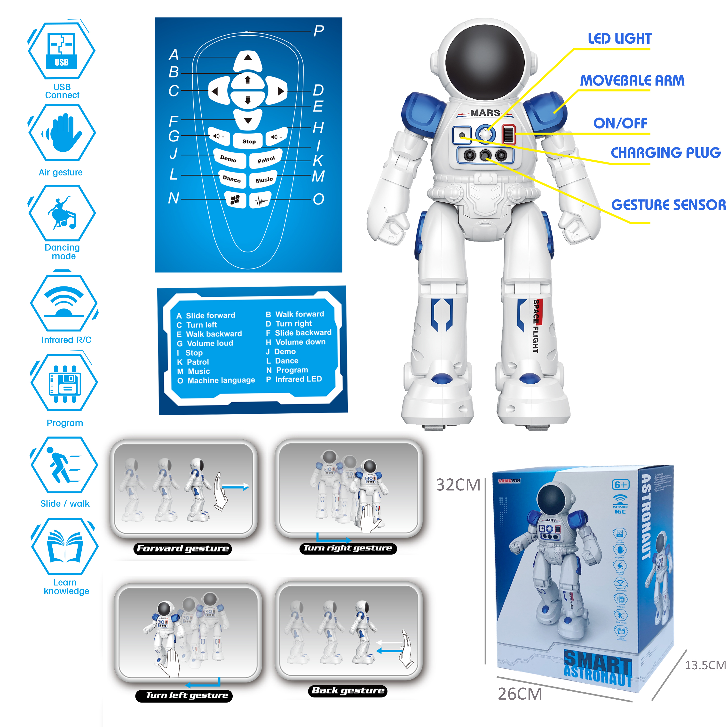 R/C INTELLIGENT ROBOT Products Function:Remote Control.Forward, Backward,Turn Left/Right,dancing, singging, sensor action,voice control, robot language speaking, DIY Deno action.
