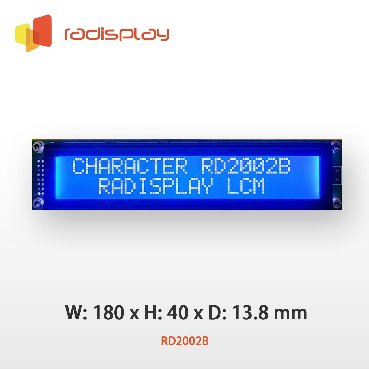 RD2002B offers large character size among 20x2 character LCD displays.