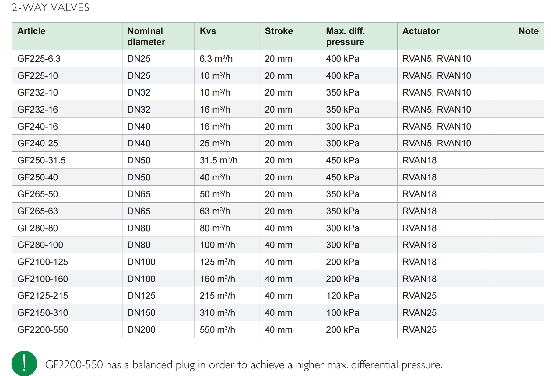 Max. diff . pressure : If a smaller actuator than the suggested one is used, the max. diff erential pressure