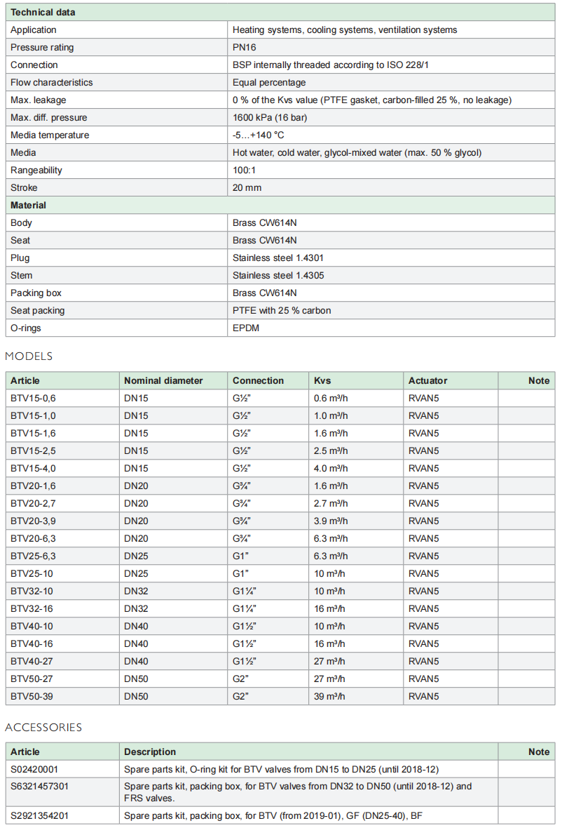 The valves are designed for control of hot, cold or glycol-mixed water in heating and ventilation systems. They are pressure balanced (from DN20-50, not DN15) and can therefore handle high differential pressure with low force. The valves are intended to be used together with Regin’s RVAN5 actuators.