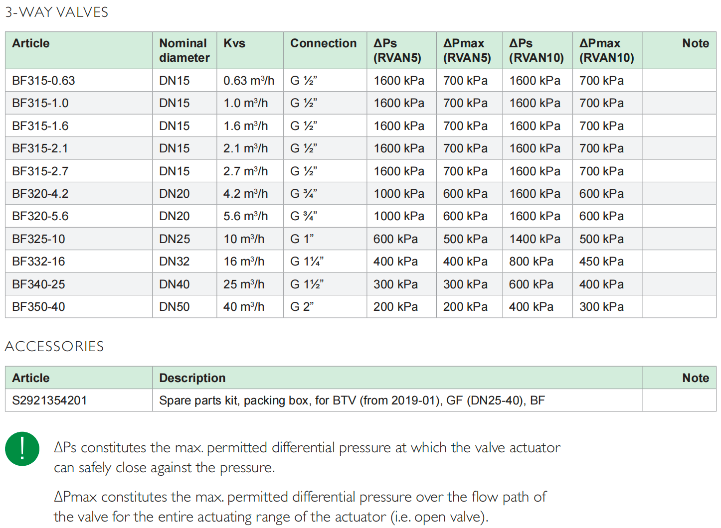 Flow characteristics:A - AB = equal percentage, B - AB = linear