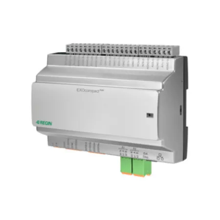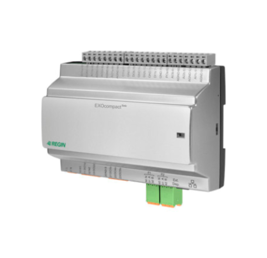 EXOcompactEedo is a 230 V AC freely programmable controller. The controller provides builtin communication via EXOline, Modbus or BACnet for integration into Arrigo BMS or other SCADA systems. It can be used either as a stand-alone unit or as part of a larger system. The controller is well suited to act as a room controller and connects seamlessly to the room units in Regin’s ED-RU-… series.
