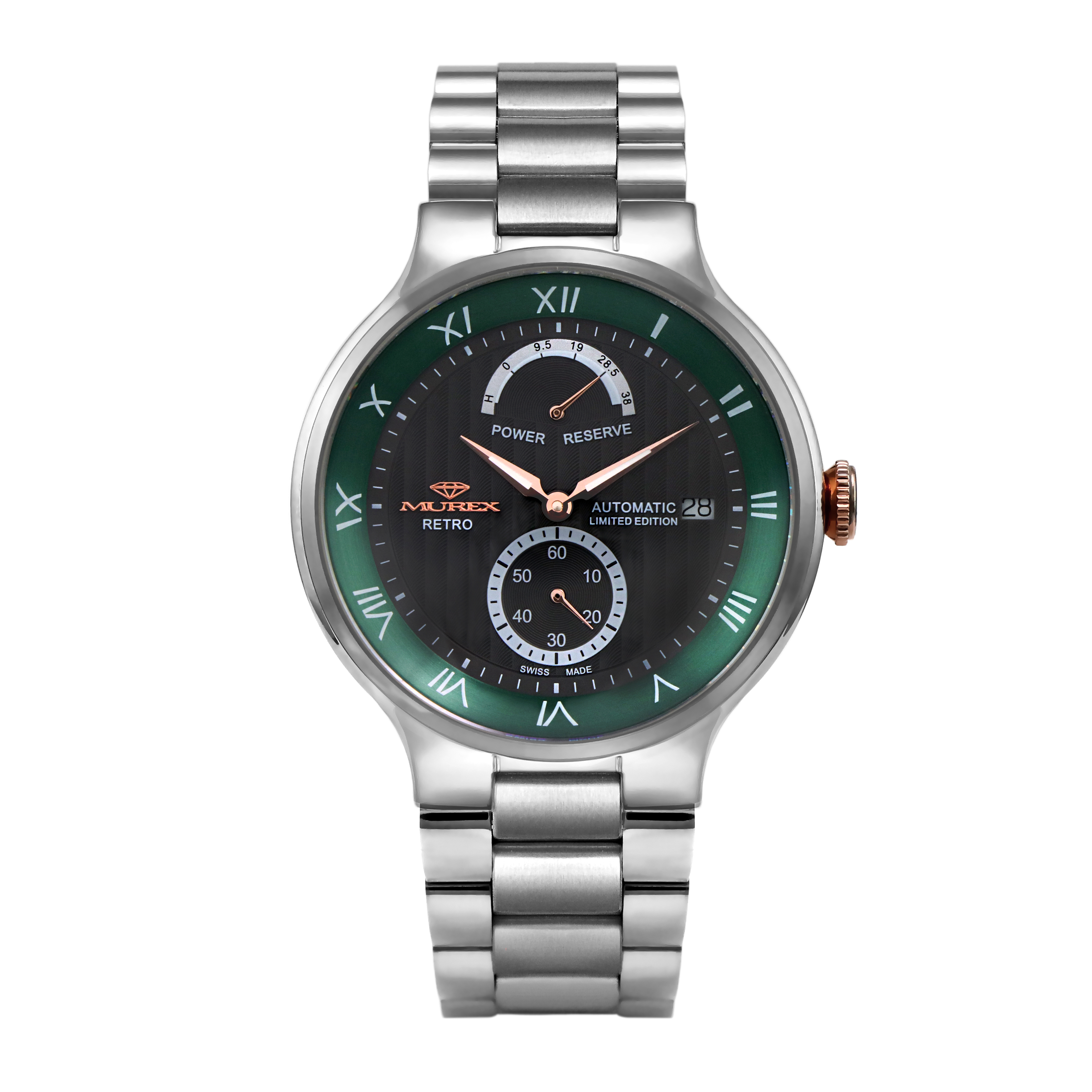 Introducing the RETRO COLLECTION by MUREX, a new line of Swiss-made automatic watches for men. This collection combines timeless design with modern craftsmanship, featuring vintage-inspired aesthetics, precision Swiss movements, and impeccable attention to detail. Each watch in the RETRO COLLECTION is a statement piece, embodying the elegance and reliability that define the MUREX brand.