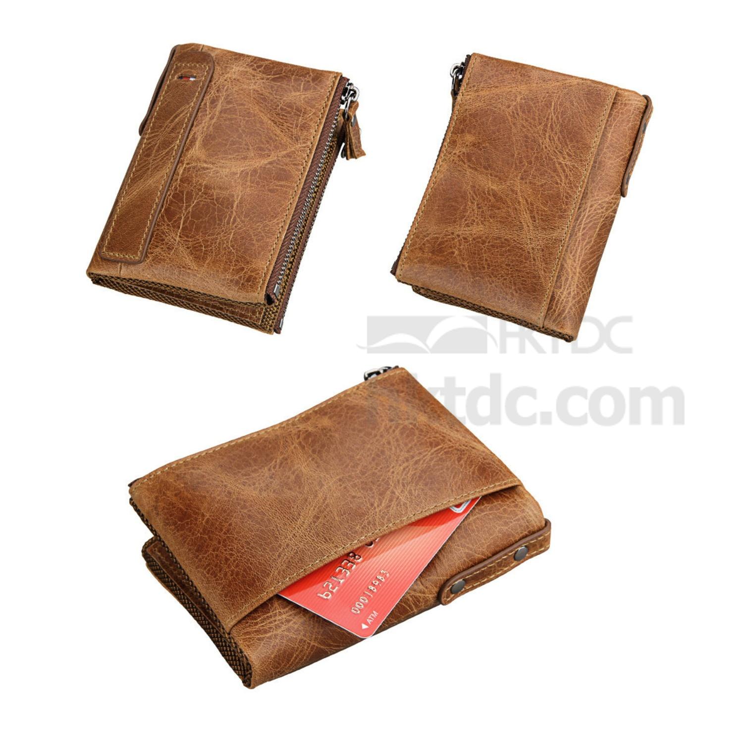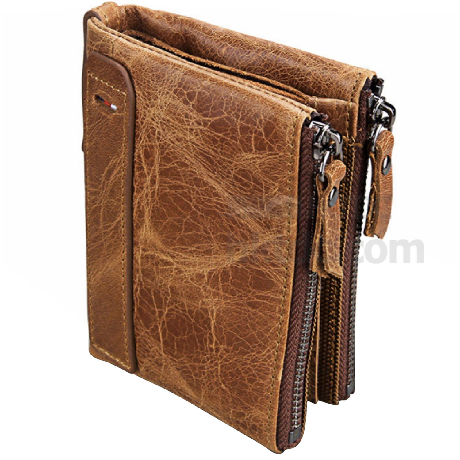 Mens Genuine waxLeather-Rfid-Blocking-Wallet-With For Men Slim Bifold
