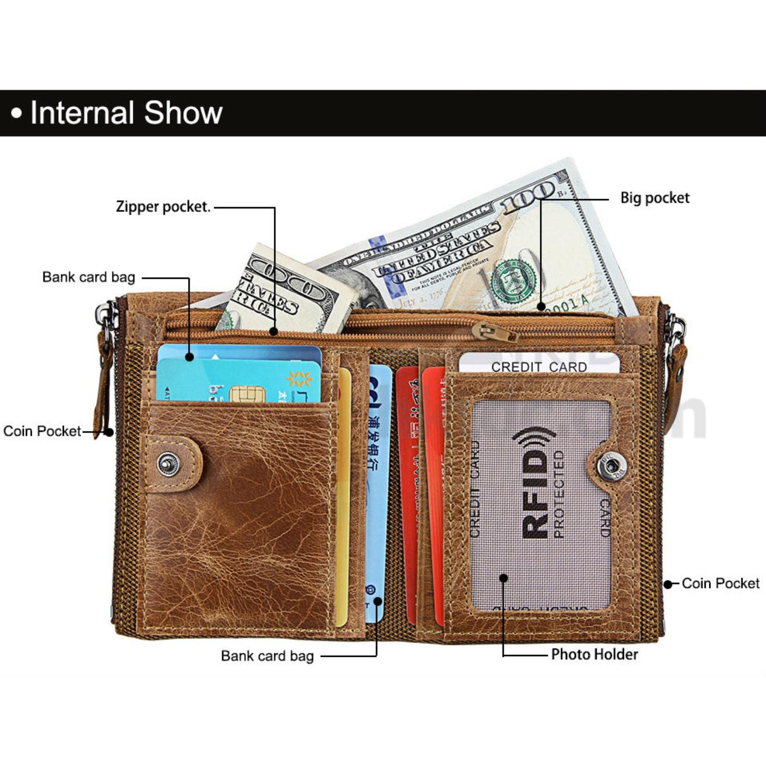 - 3) LARGE CAPACITY: Interior slot pocket,coin pocket,photo holder,card holder. Double zipper creative,coin is portable,easy carry and storage.