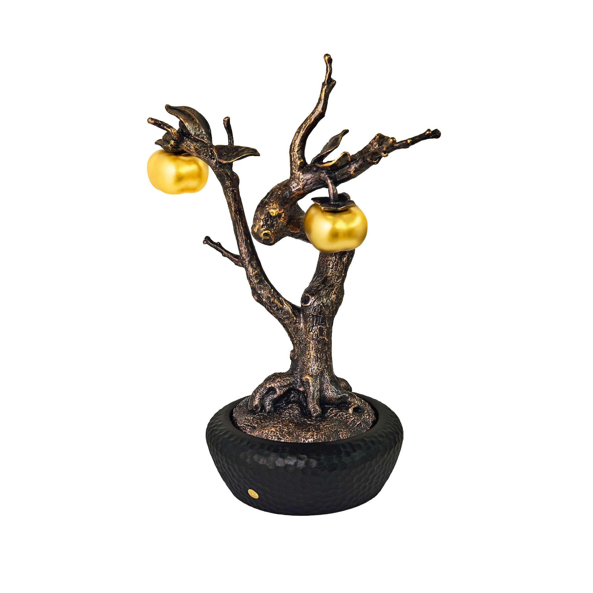 This exquisite, handcrafted bonsai features two golden persimmons, a beloved symbol of harmony, fulfilment, and smooth-sailing fortune. In Asian culture, the persimmon (柿, shi) embodies《事事如意》— the wish for everything to go according to one’s hopes. Each persimmon is encapsulated in 24K Swiss Gold, set atop a sleek black pot, making it a stunning statement of prosperity and refined décor