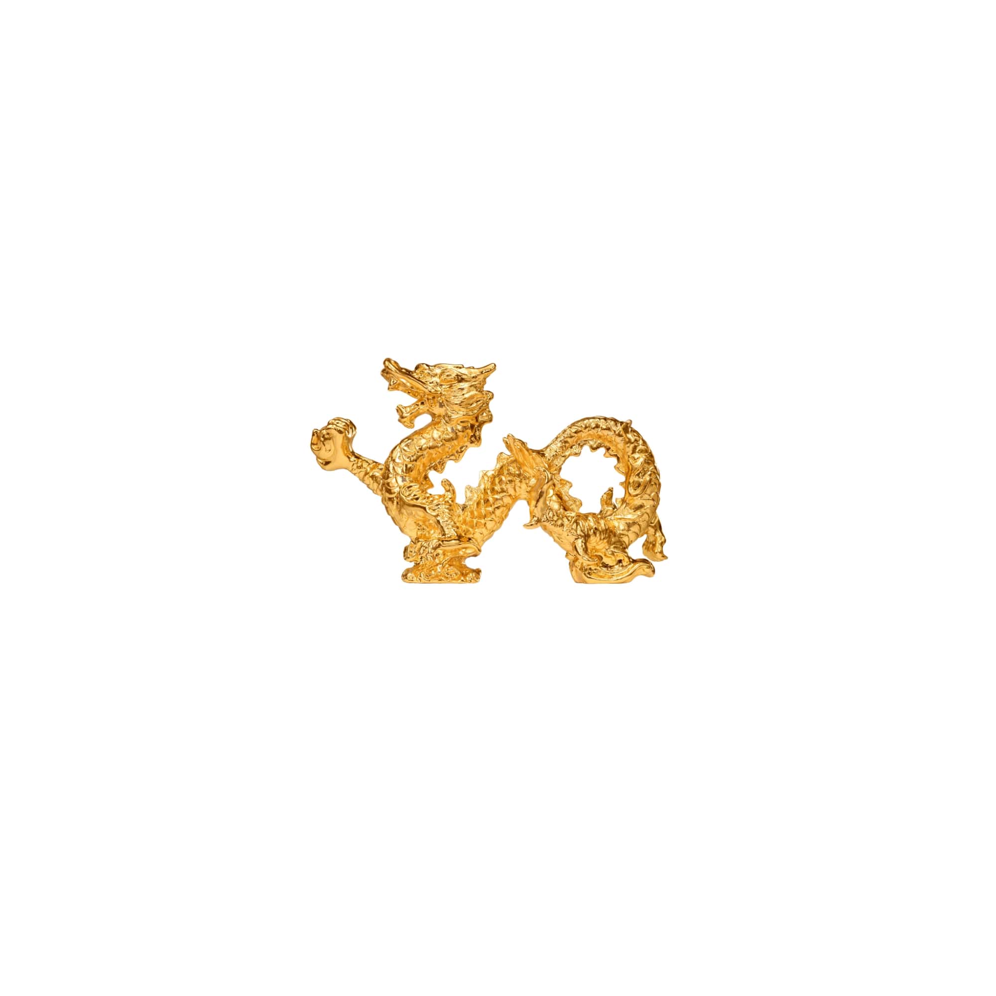 Shaped in the form of an infinity symbol, the majestic dragon embodies boundless potential and unfathomable power. Beneath its majestic form, two delicately sculpted waves elevate the dragon, enabling it to conquer and traverse the vast seas in all directions—north, south, east, and west. This imagery anchors the dragon's dominance, carries its sense of ambition, and extends its influence and reach far and wide as it soars across all domains of life.