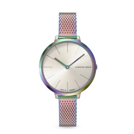Delicate, clean lines. Confident and full of feminine power. And completely individual. The Rosalux Rainbow Edition embodies joie de vivre, uniqueness and the desire to make the world a little more colorful. Each piece features a different color gradient on the case and the hands, guaranteeing each watch is truly unique.