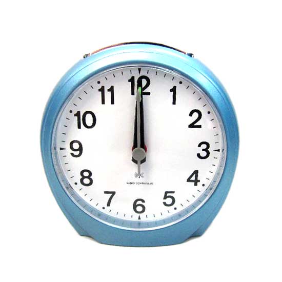 This round radio-controlled alarm clock comes with a white dial with 3 hands. The smooth and shiny case is made of plastic for a long service time. This compact alarm clock is ideal for home use.