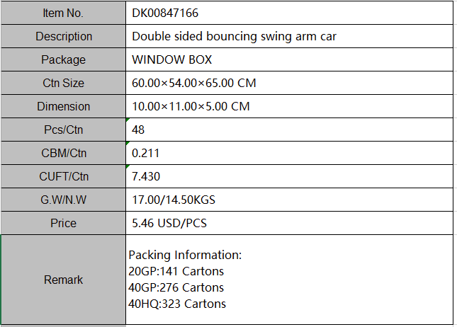 Radio control double sided bouncing swing arm car toy