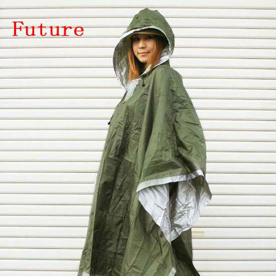 Highlighted here is a raincoat that protects your body form rain. It features a poncho style design. This rain poncho is comfortable to wear.