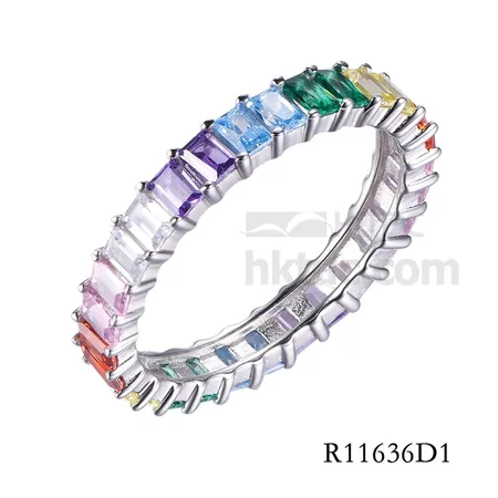 Rainbow Stone Channel Setting Ring 925 Sterling Silver jewelry