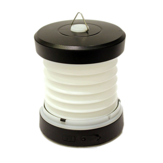 This is a rainproof telescopic camping lantern with a durable casing. It is powered by a hand crank to eliminate the need for an external power source. The hanging handle and folding design ensure added functionality.