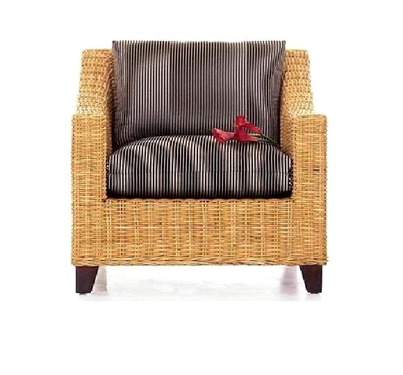 Highlighted by a sturdy construction with compact rattan, this arm chair is durable enough to be used over years. Attached with pinstriped cushions, a strong sense of chic is presented.