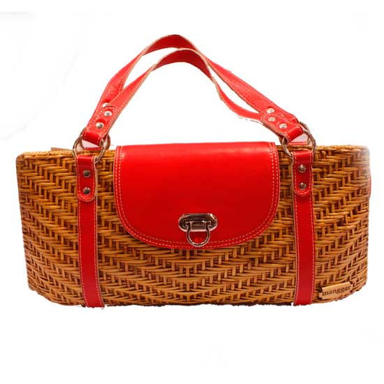 The rattan bag is a handmade creation by the skillful artisan. Its flap, straps and handles are made out of genuine leather. This piece is a stunning outcome of tradition and modernity.