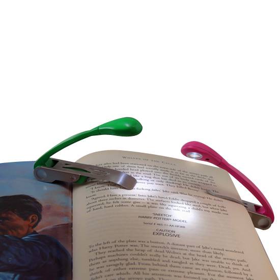 The reading lights in either green or pink colour. The clip-on light has a rotatable head. It provides a clear bright spot light for reading, hobbies, camping or keyboard.