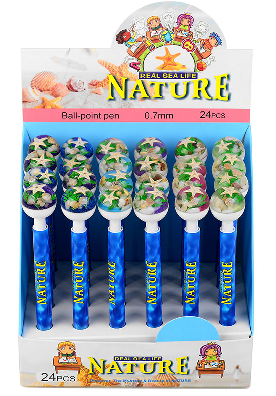 These retractable ballpoint pens flaunt an appealing look that the large transparent balls on the top deliver a miniature of a colorful and lush world under the sea. Together with a sleek barrel with wave pattern printed all over, these eye-catching pieces offer a solid and snug grip for long time writing.