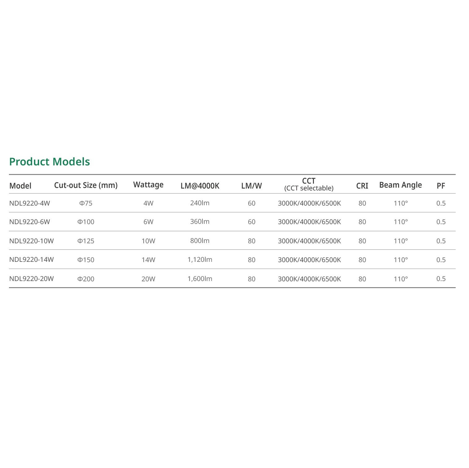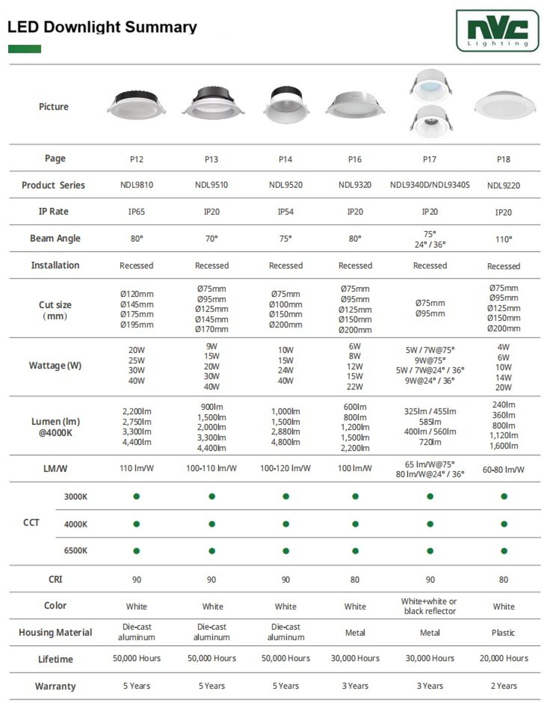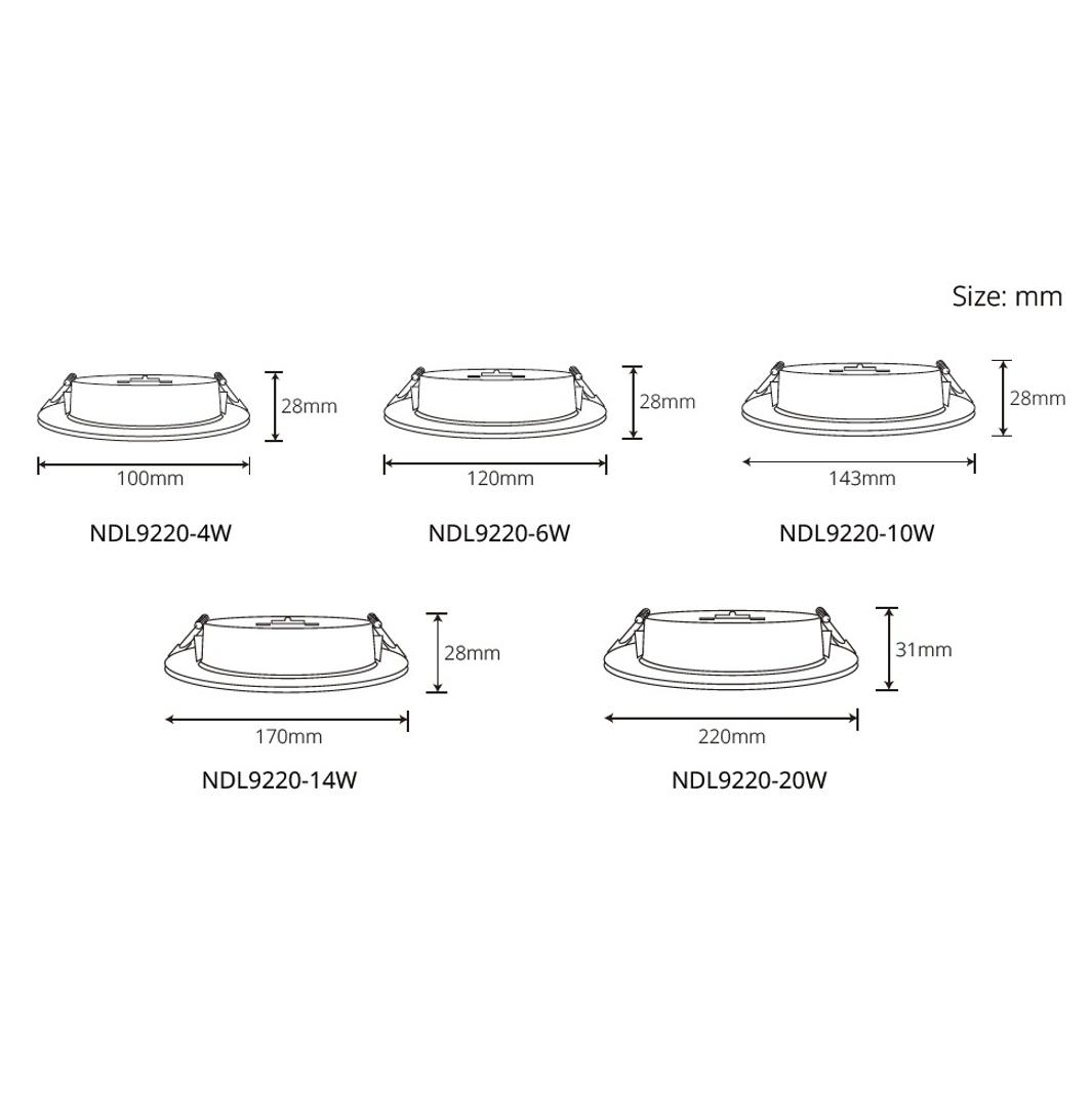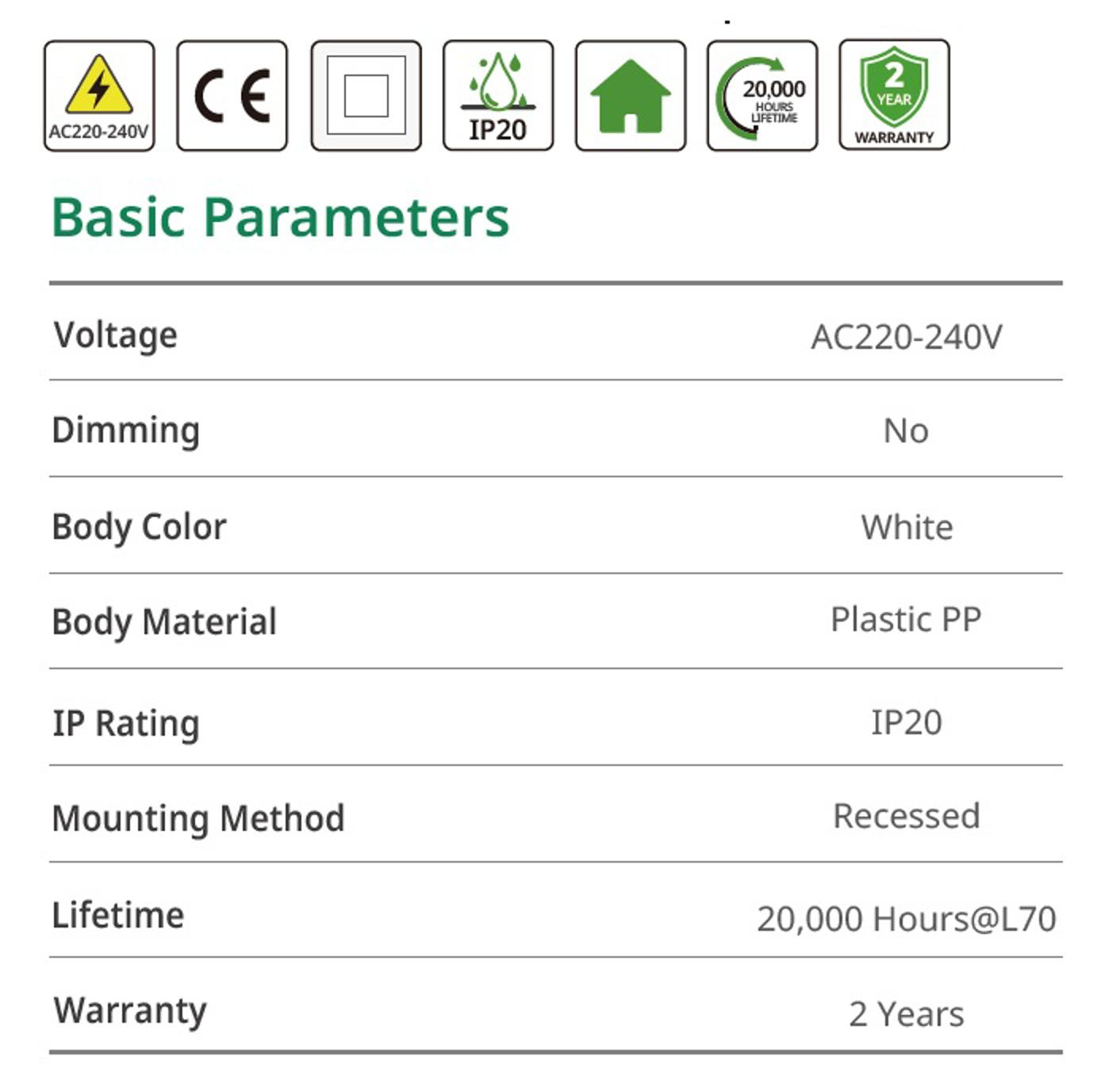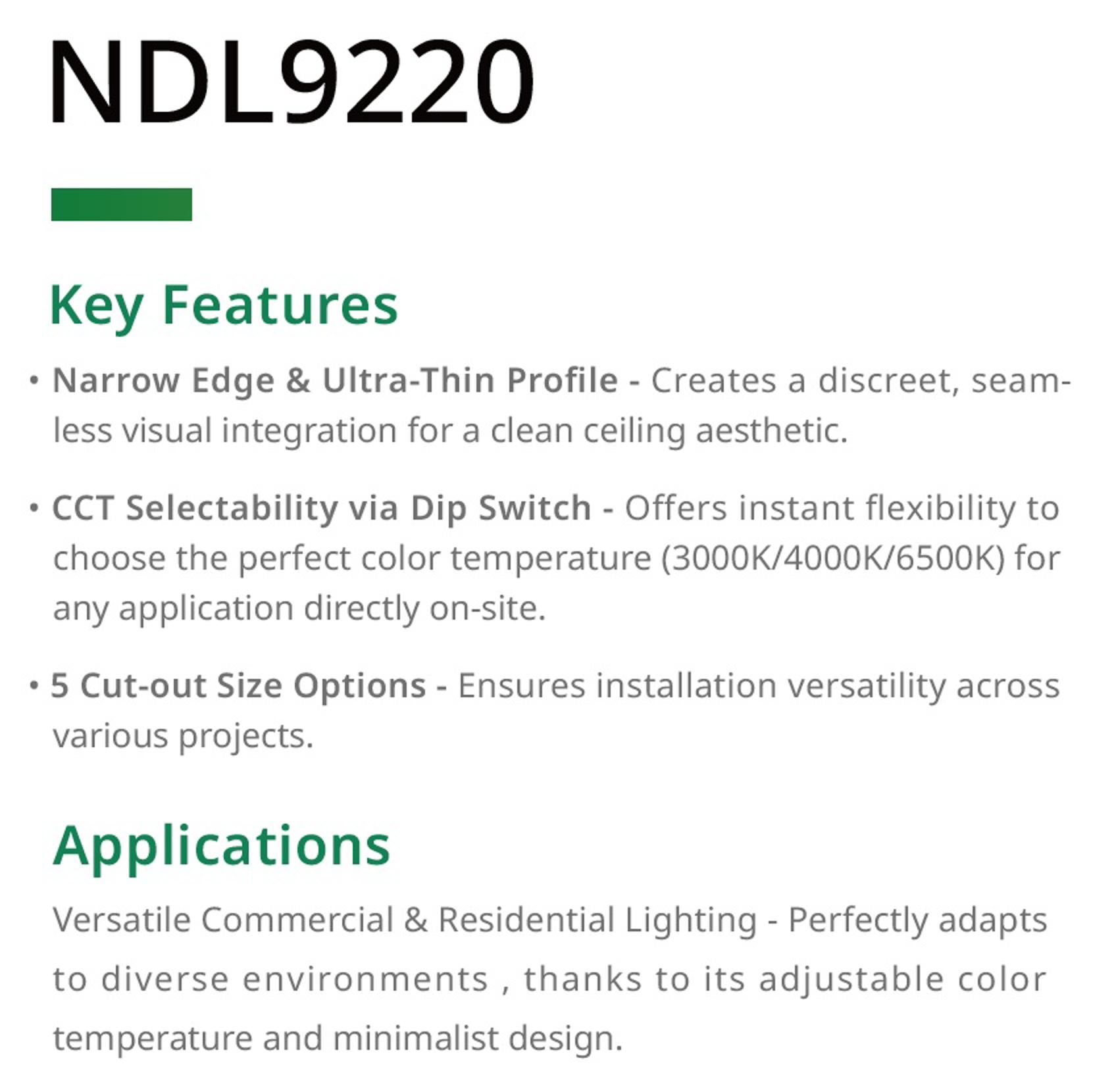 Narrow edge & Ultra-thin profile in Plastic PP body, CCT Selectable via dip switch, 5 cut-out size options