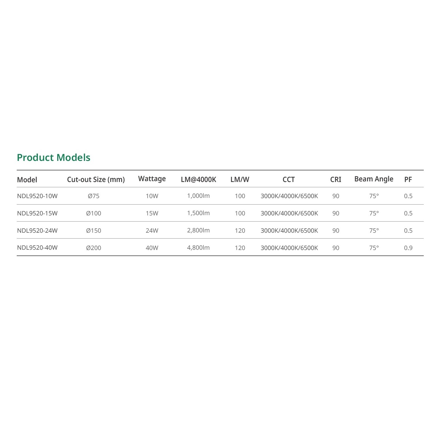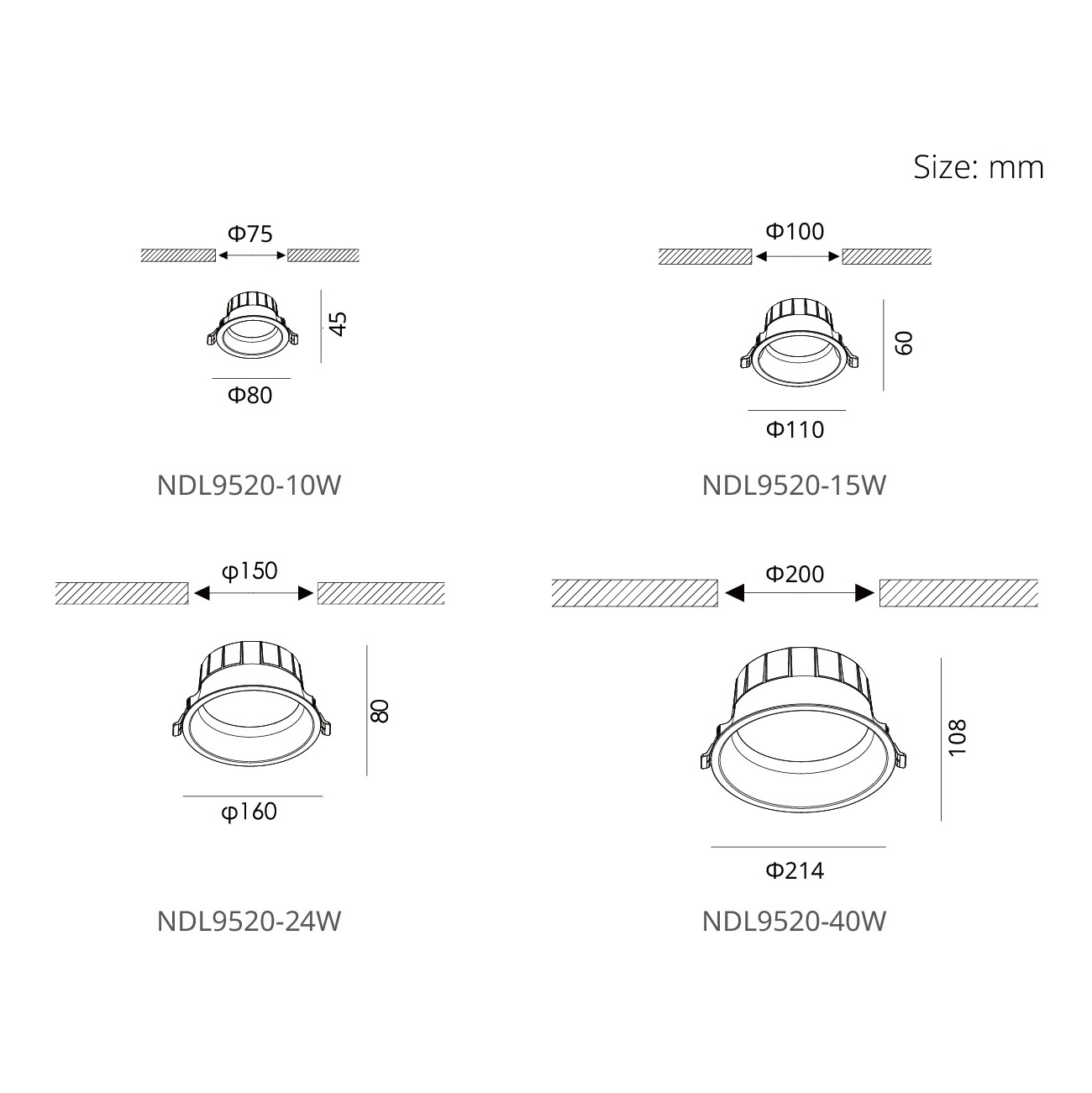 Recessed Downlight, High Power, CRI 90, IP54, CE, NVC, NDL9520