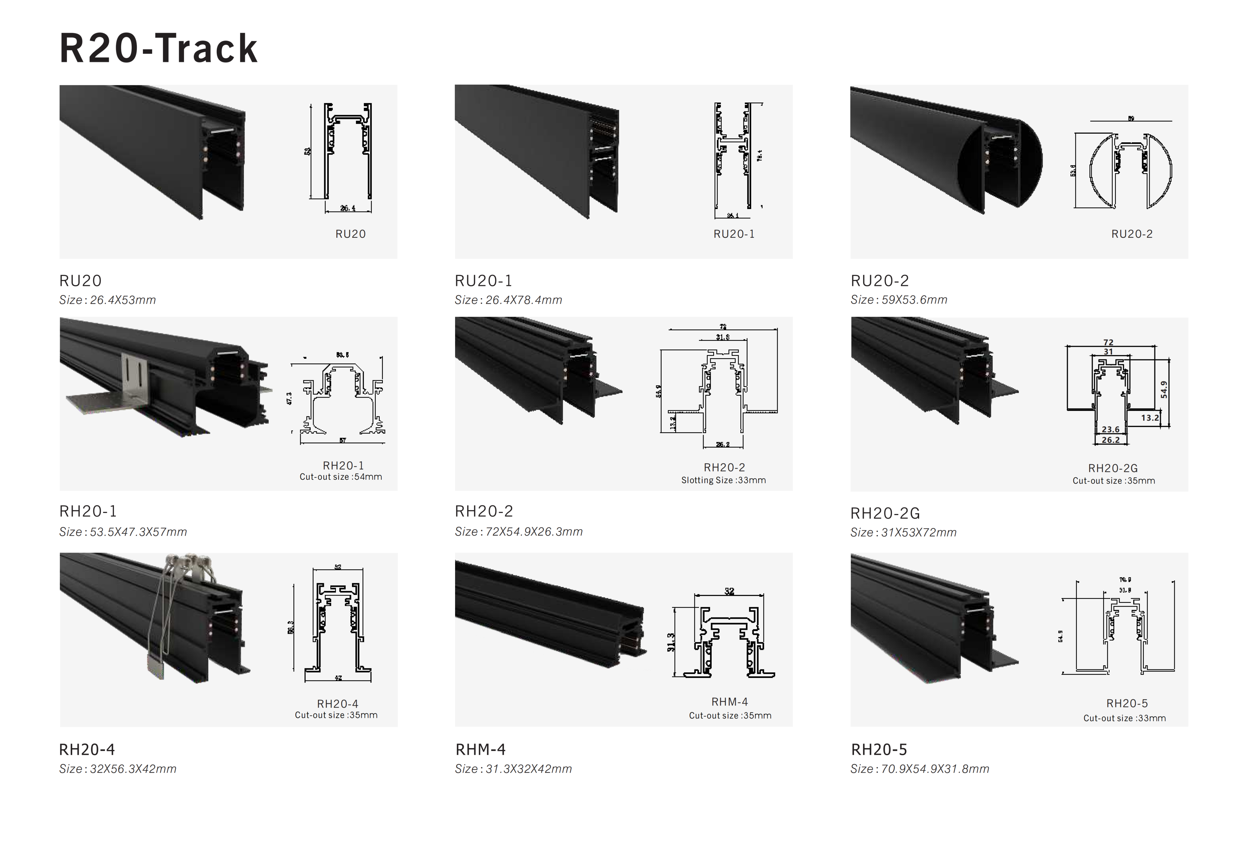 Magnetic track rail, in the size of 15mm, 20mm & 35mm are available;
