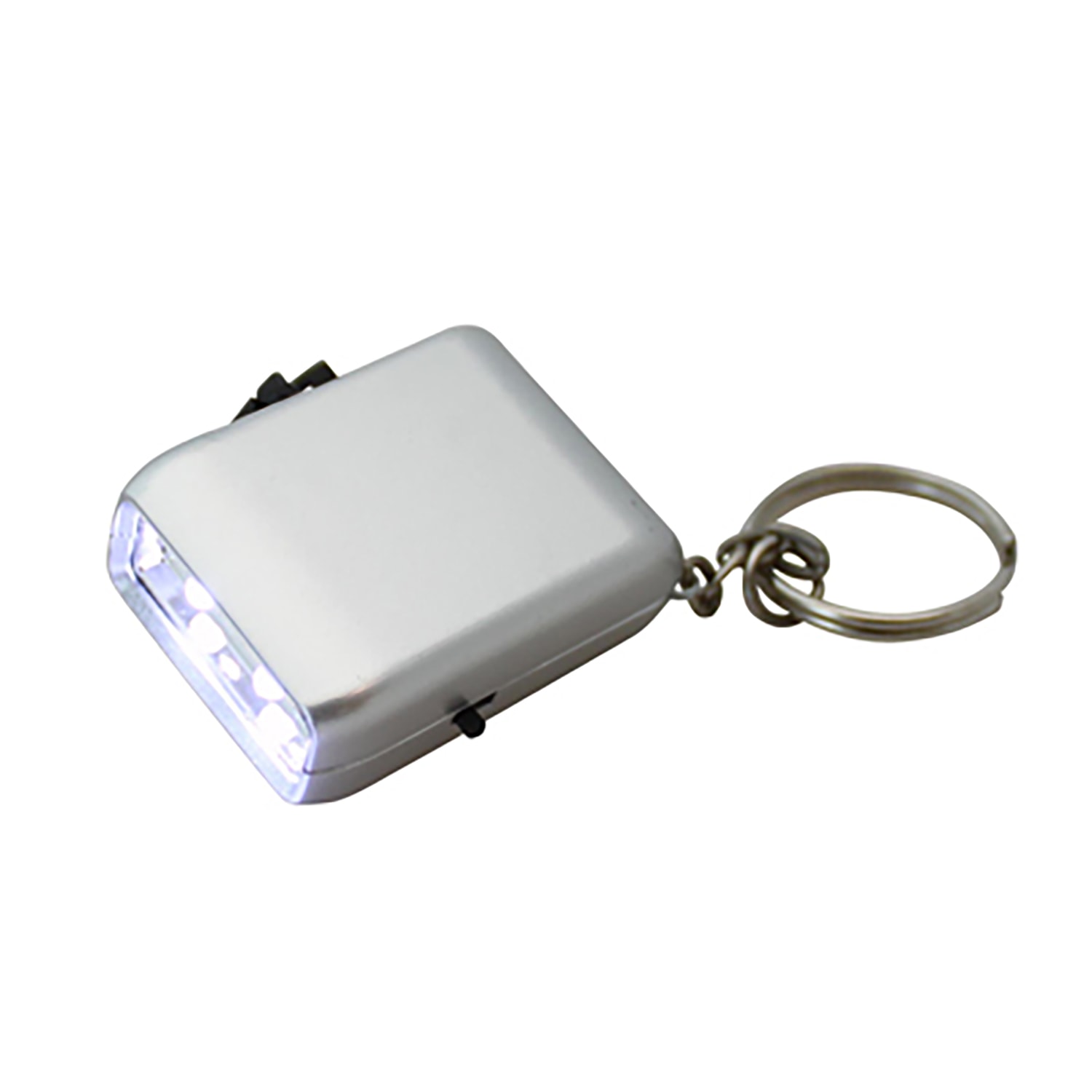 Displayed is a lightweight LED flashlight in ABS square housing. Two LEDs are located on the front as a mini light bar. Crank the small wheel aside, this LED flashlight can operate 20 minutes of full illumination.