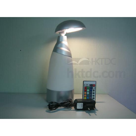 This is a rechargeable reading lamp with a uniquely cordless design. It features a cone-shaped body and a dome-shape head with a silvery surface. The lamp adopts LEDs as the light source to deliver high brightness with low energy consumption.