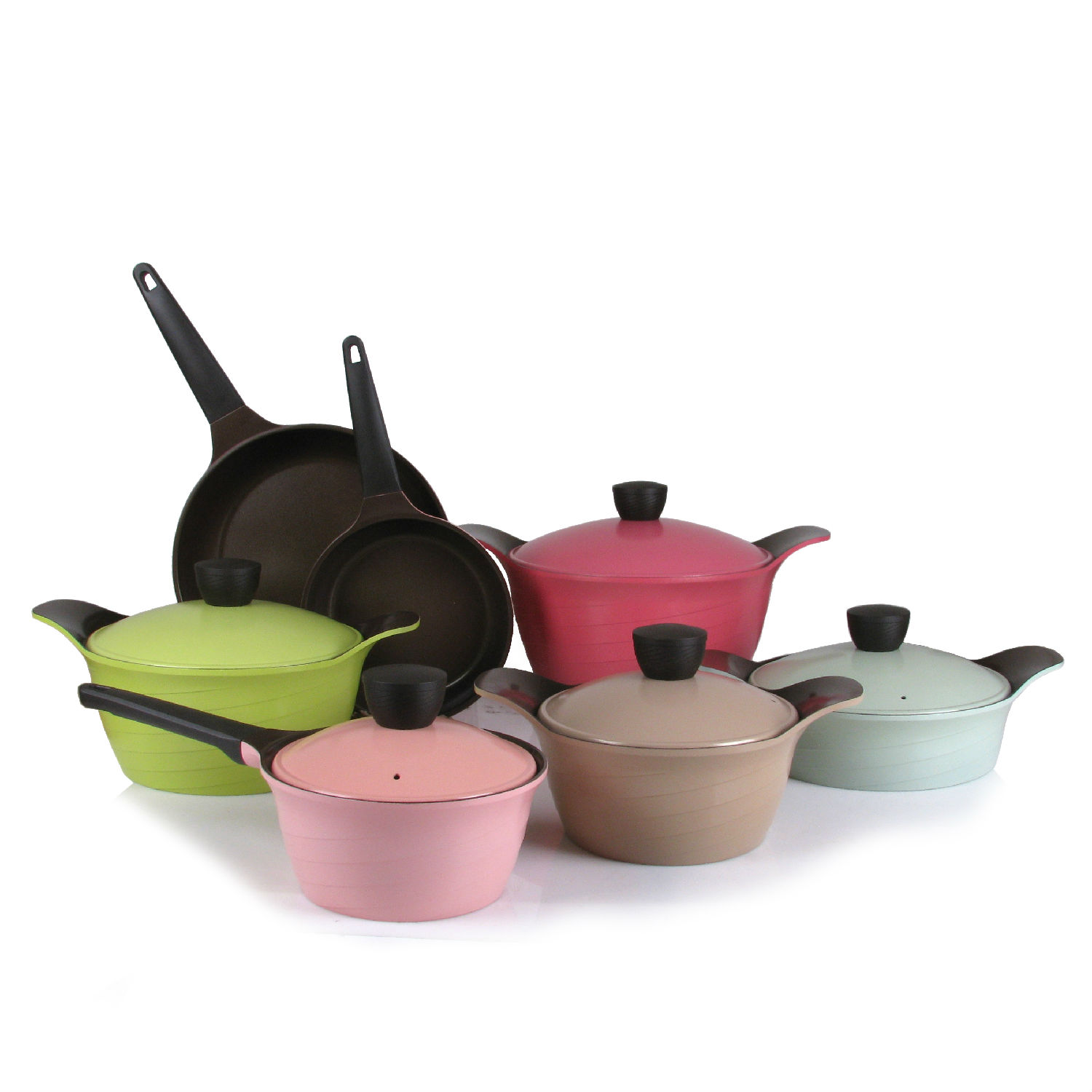 Alum cookware & kitchenware with Bakelite handle, barrel silicon knob.