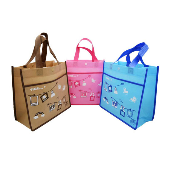 This is a shopping bag made of quality nonwoven material. It is finely printed with cartoon photo frame patterns for added style. This bag is available in various colors for your selection.