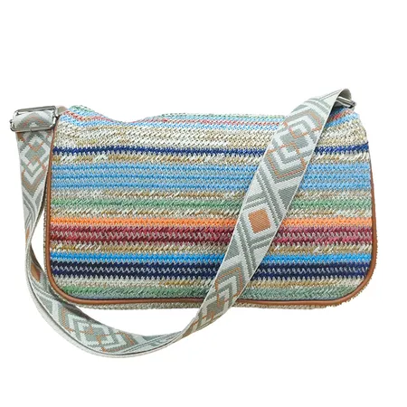 Recycled Material Rainbow Woven Bag Eco-Conscious Women's Shoulder Clutch with Chain