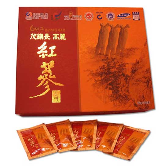 The beverage is made from 100% red ginseng extract with no additives added. It provides various health benefits such as lowering blood pressure and blood glucose levels. This red ginseng beverage is great health supplement drink.