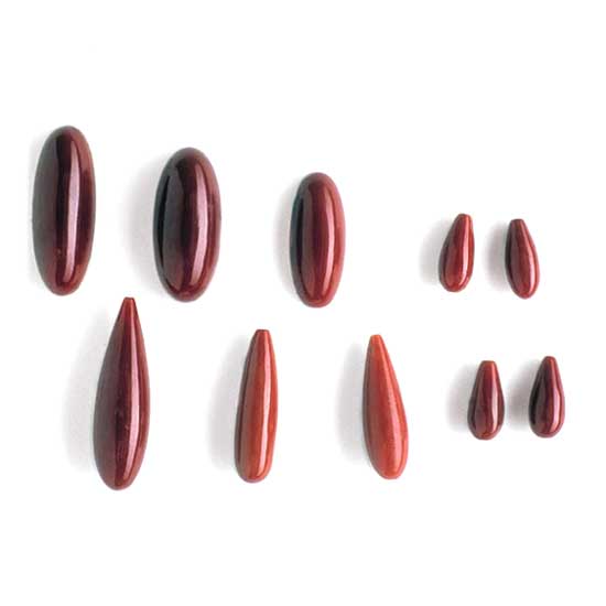 This splendid red Mediterranean coral comes in four assorted shapes. They are round, baroque, cabochons and drop shapes. This dainty red Mediterranean coral add a touch of elegance to your jewelry.