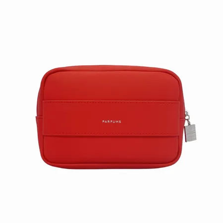 Whether you're looking to promote your brand or give a thoughtful, stylish gift, this red vegan leather cosmetic pouch is the ideal choice for a functional, fashionable, and sustainable option.