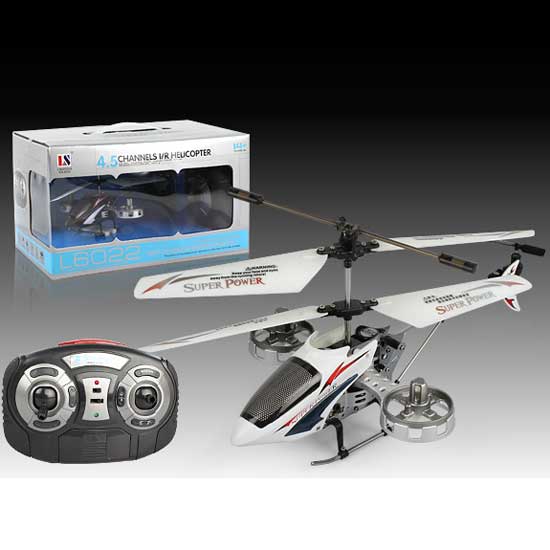 Featured is a remote-controlled helicopter with a 4.5-channel design. The helicopter is designed with every attention to details for an impressive look. This handsome piece is sure to entertain your fun-loving kid for hours.