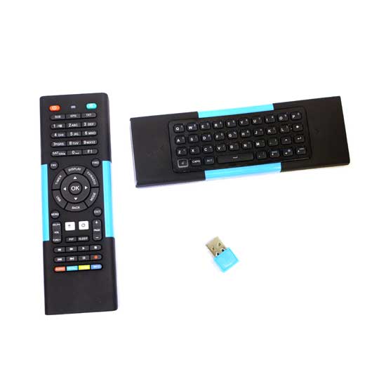 This remote control set includes a bar-shaped controller, a mini keyboard and a USB receiver. The remote controller allows you to enjoy multi-media entertainment on your smart TV or PC. It is also convenient and efficient for conferences, presentations and lectures.