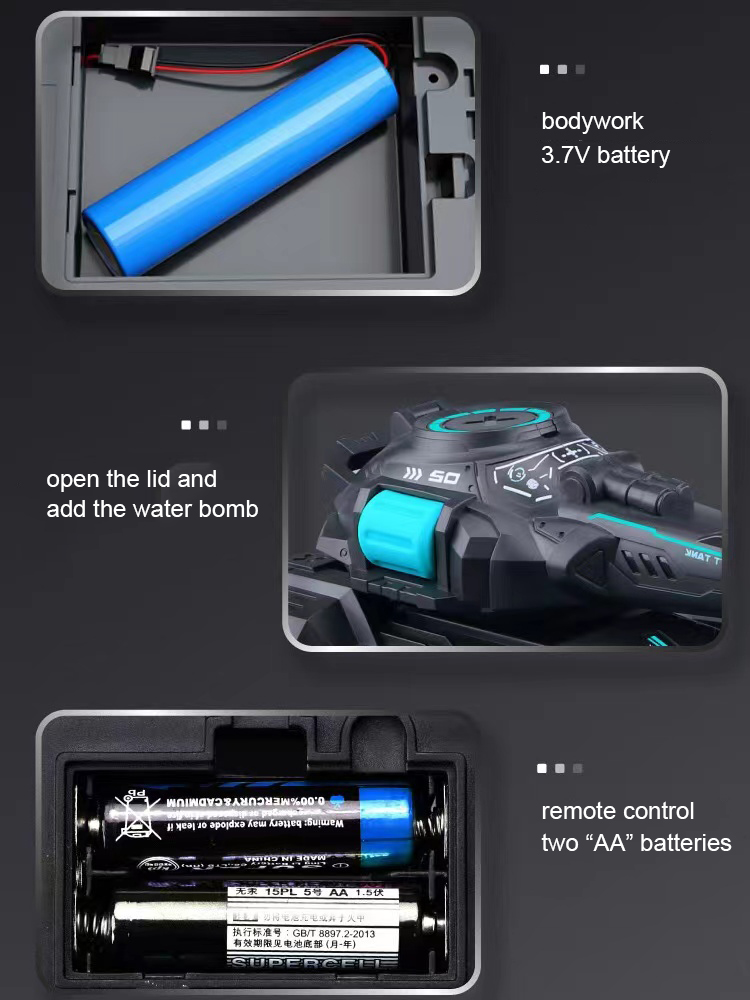 shoot the water bomb,automatic presentation,trun left/right,forward,backward,360°drift