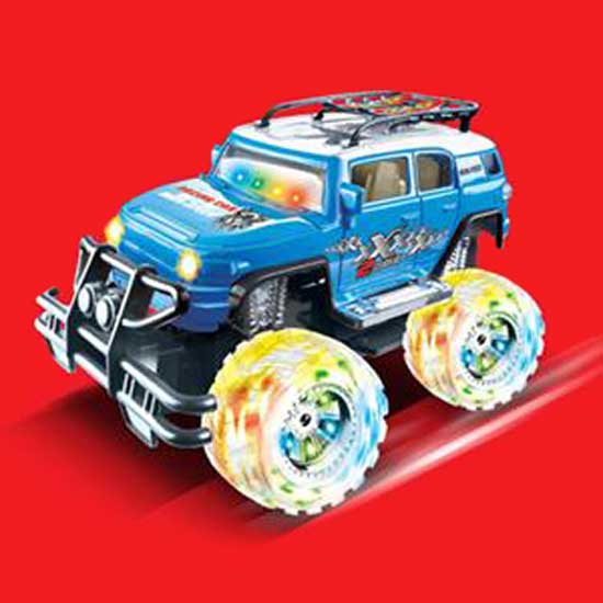 The featured remote-controlled car comes with a brilliant blue appearance. The flashing lights and big wheels enable the car stand out front others easily. This cool remote controlled car is a delightful gift for your beloved little ones.