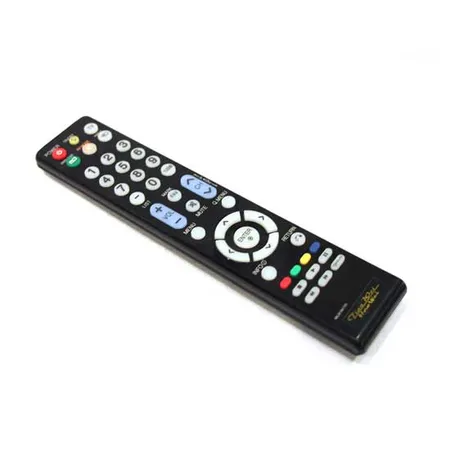 This presented remote controller features a classy black housing attached with colorful buttons. The buttons are designed with various functions for multiple purpose application. This displayed remote controller goes great with a wide range of audio-visual equipment.