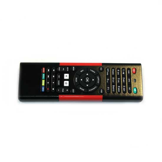 This pictured remote controller comes with a black housing. It is designed with various buttons for multiple functions. This remote controller is compatible with a wide range of audio-visual equipment such as televisions.
